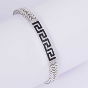 Minimal design meets bold identity in the Noir Greek ID Bracelet 7MM, crafted from genuine 925 sterling silver. This sleek 7MM structured link bracelet features a refined GF Greek-pattern black enamel lock, creating sharp contrast against the high-polish silver finish. The clean geometric detailing delivers a strong yet elegant presence, while the 8-inch length ensures comfortable everyday wear with a premium, modern look.
